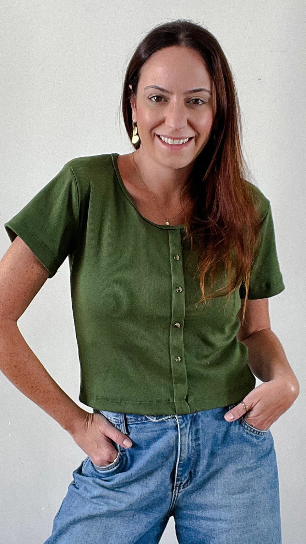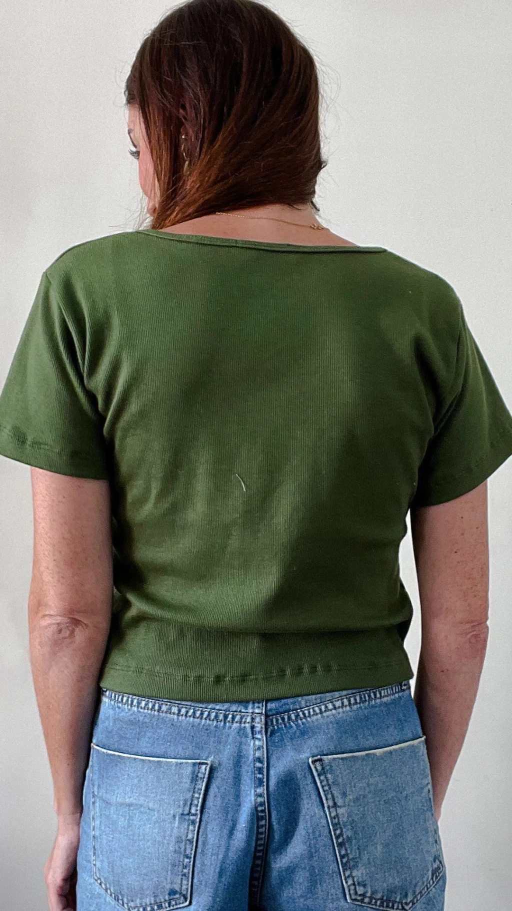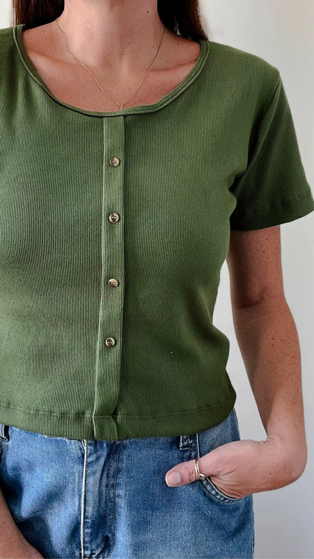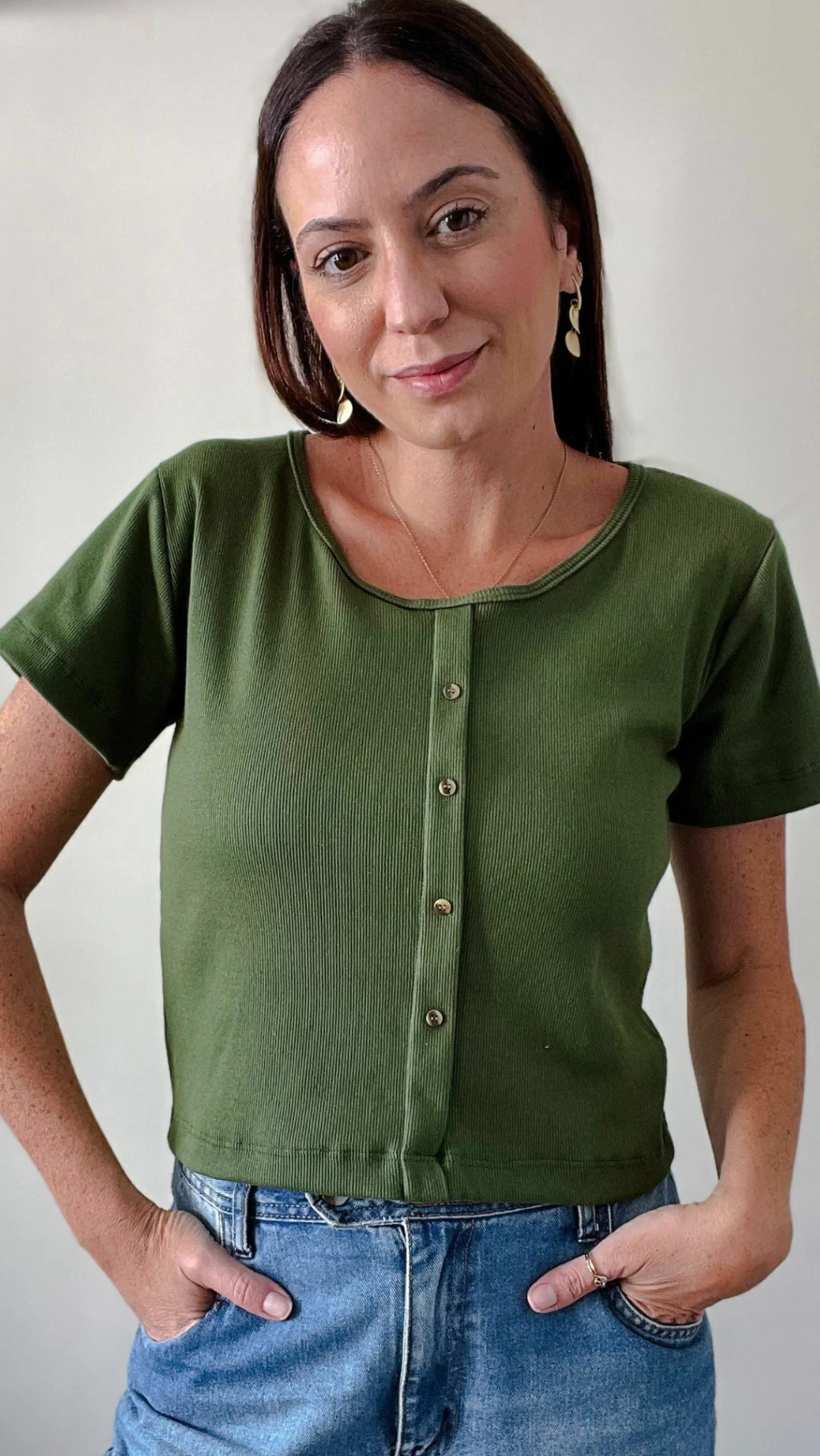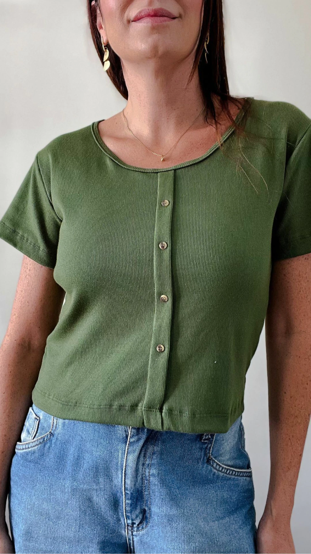 Blusa Canelada Manga Curta Ana Verde Militar