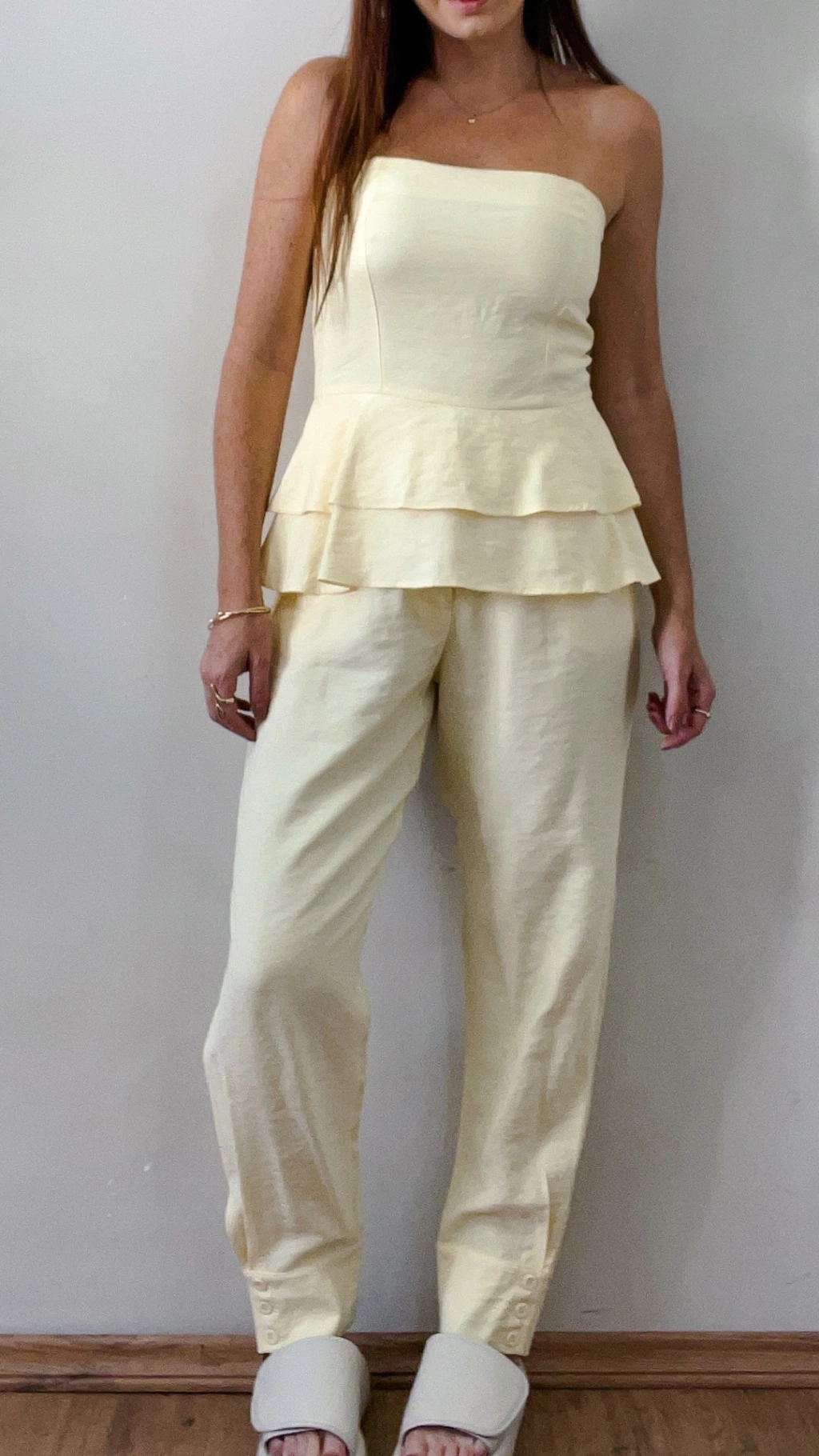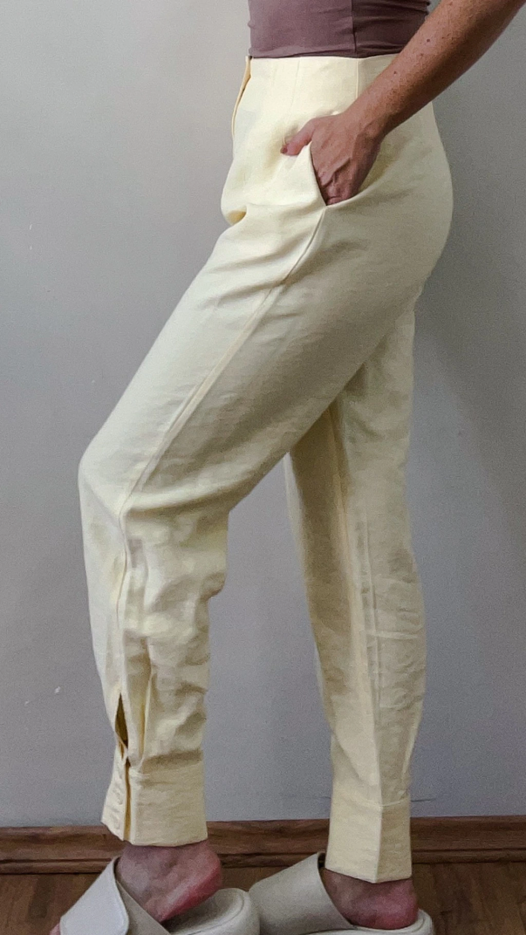 Descubra a Calça Alfaiataria Leticia Jogger Amarela, perfeita para quem busca sofisticação com conforto. Com modelagem jogger sem cós, ela traz detalhes de costura frontal que valorizam a silhueta. O fechamento é feito com zíper e botão, enquanto os bolsos corte faca oferecem praticidade, mantendo o design limpo na parte posterior.