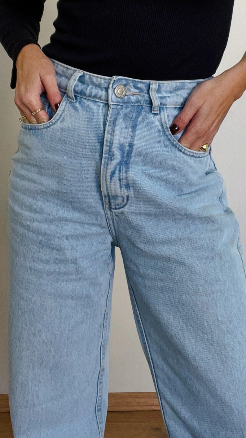 Feita com um corte wide leg e cintura alta, esta calça é perfeita para quem busca conforto e estilo. A lavagem clara traz um toque de leveza, ideal para looks tanto casuais quanto clássicos.