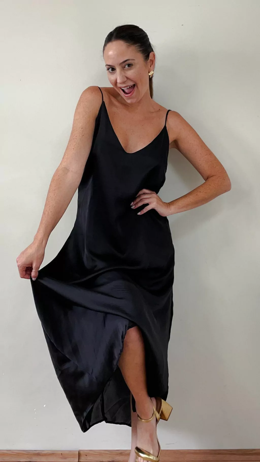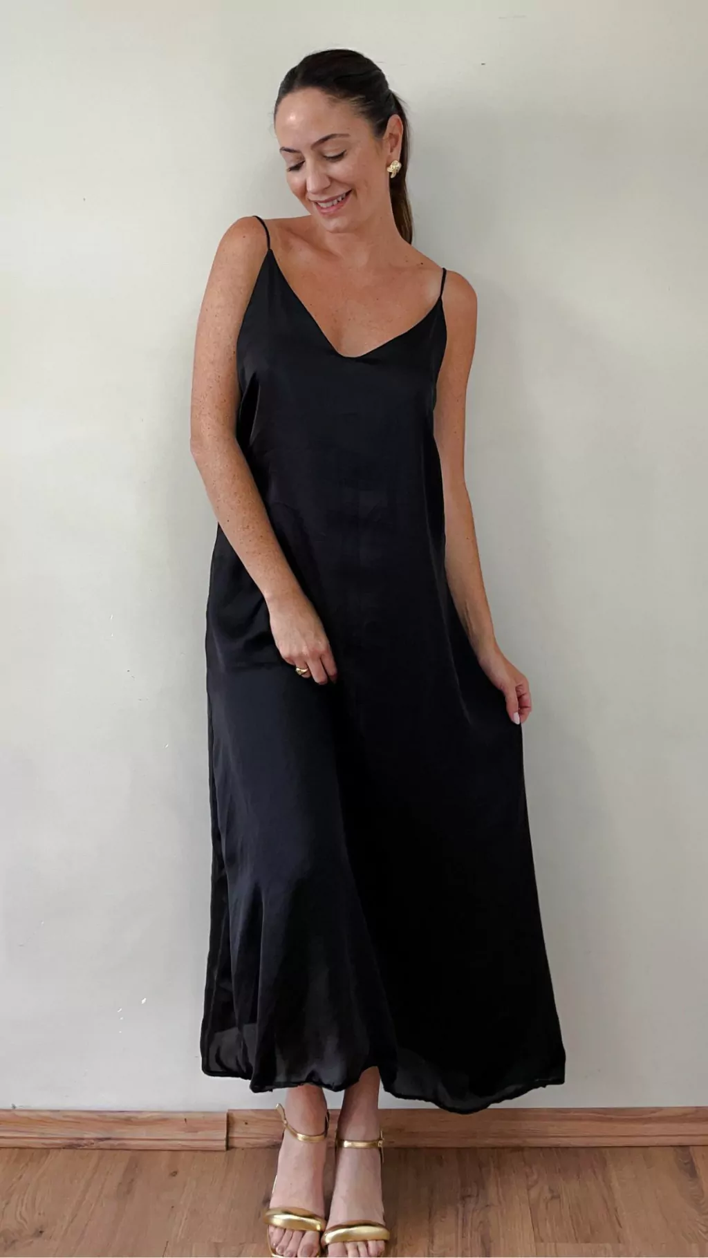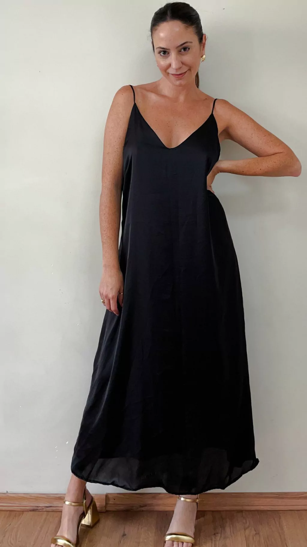 O vestido Ipanema é aquele coringa necessário para os dias quentes, festas, eventos sociais e até para ocasiões casuais! Feito em cetim, possui modelagem ampla, ele fica super solto no corpo, possui alças finas e reguláveis. Ele fica mais justo no busto e largo na parte debaixo. Seu comprimento é cropped, ou seja ele fica um pouco mais comprido que o comprimento midi, e mais curto que o comprimento longo. Geralmente este comprimento cropped fica na altura da canela. Possui forro no mesmo tecido