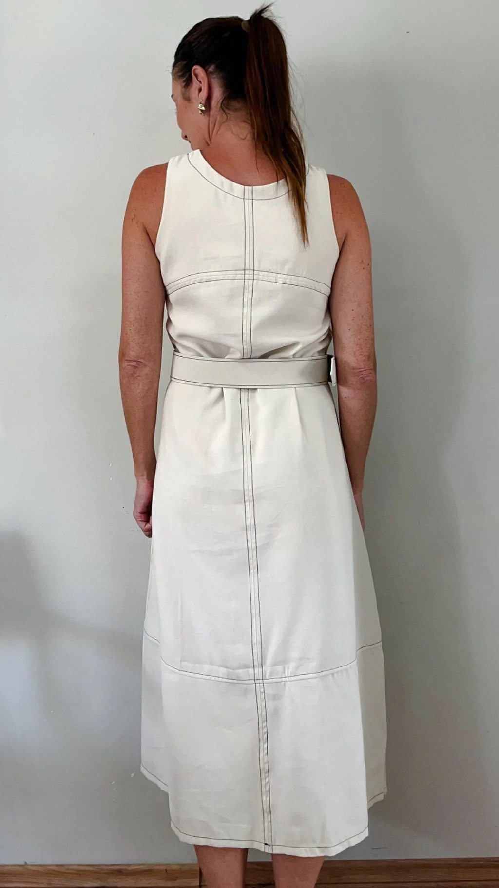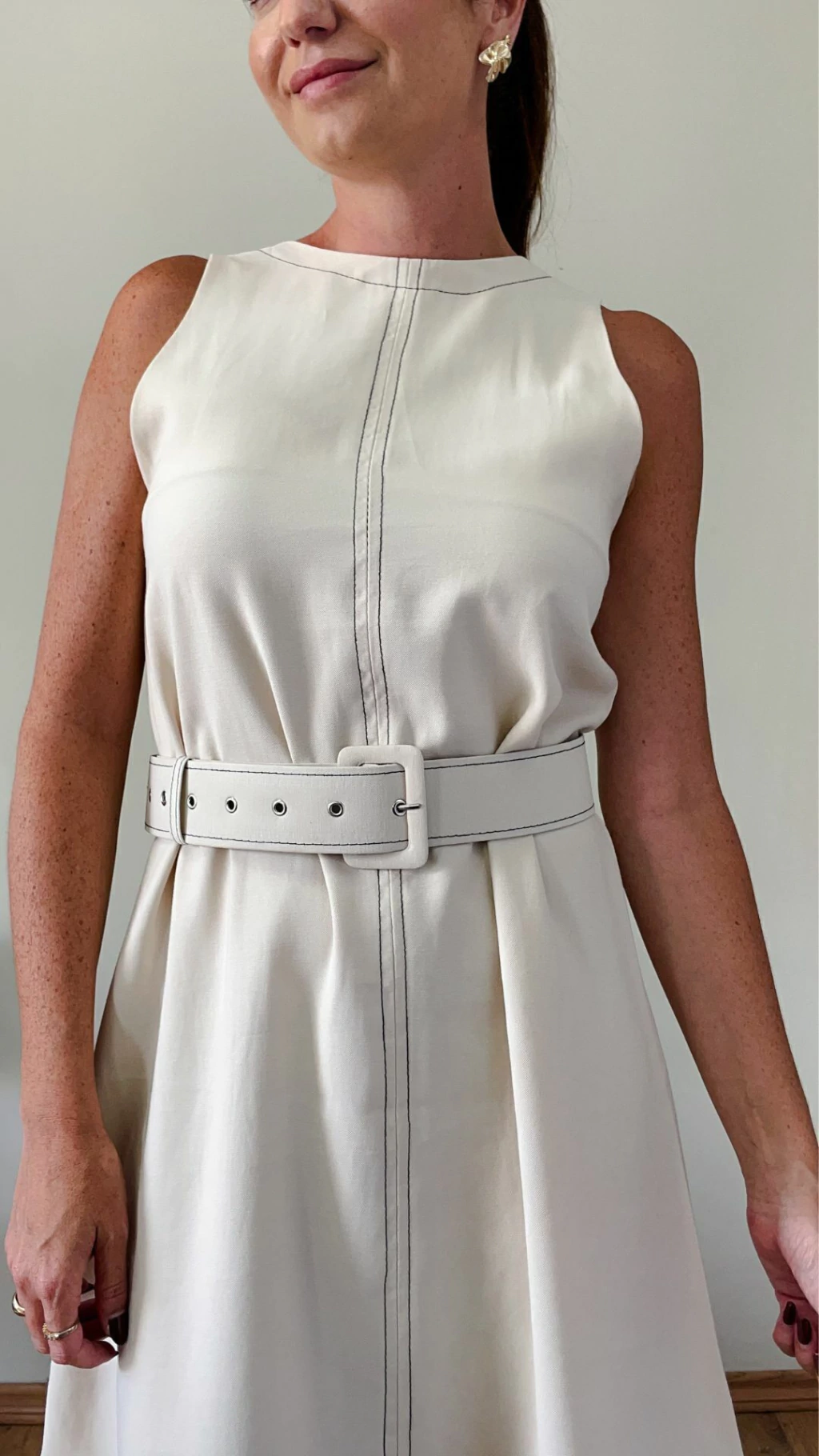 Feito em tecido viscocrepe com gramatura média, nosso Vestido Midi Off White possui detalhes de costuras aparentes que trazem muita personalidade para a peça. Corte regata, e comprimento midi, vem acompanhado do cinto no mesmo tecido e acabamento!